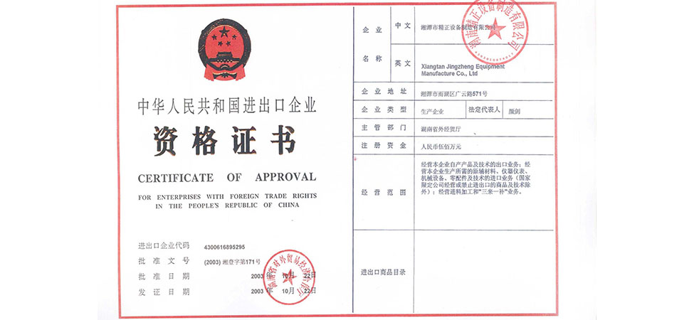 湖南精正設(shè)備制造有限公司成立;2月,與清華大學材料科學工程系聯(lián)合研制屬于國家863計劃項目的陶瓷膠態(tài)注射成型機;10月23日,獲得國家進出口經(jīng)營權(quán)。